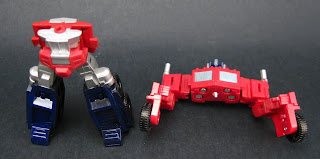 Aesthetics: 7/10 - Great sculpt for its size and aside from his "missing back" and the forearm kibble, he could rival some of the newer Optimus Primes out there. Hes surely better looking than the G1 release of Prime from way back.
